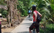 ![]() After breakfast at home stay, the last short boat trip will be reached Vinhlong, one of the famous fruits town in Mekong, bike along narrow country lanes, easy dirt tracks and trails. This is biking at its most glorious-through tiny orchards, witness colorful life along the riverside, pedal pass picturesque delta homes, pause to chat with welcoming villagers, clack across innumerable wooden bridges. Cross narrow canals on a local sampan, before finishing at the main ferry for a refreshing boat trip across the expansive Co Chien River. Biking final few km to the very pretty Khmer town of Travinh. There will be plenty of time to explore side tracks and trails as the cycling distance today is not far. This gives a great first impression of the “heart of Mekong”. Overnight is in local hotel in Travinh. (B,L,D)